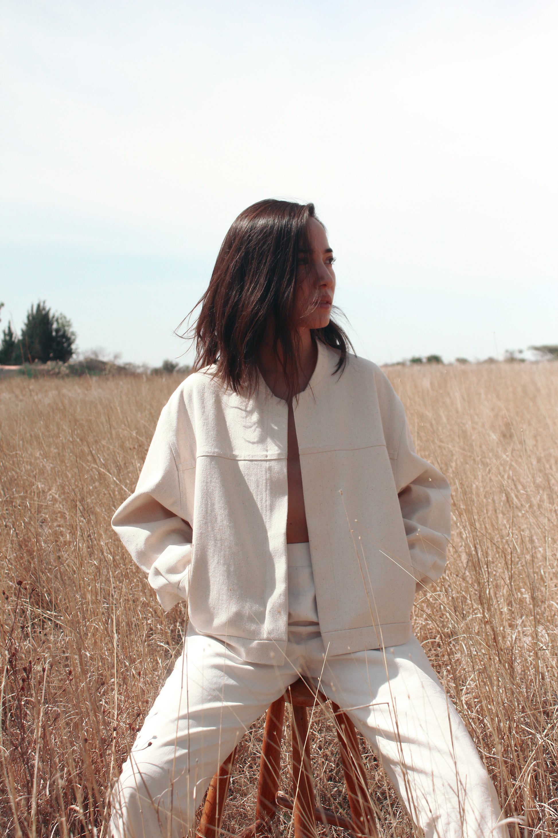 Chamarra unitalla oversized de mezclilla cruda de algodón 100% mexicano.